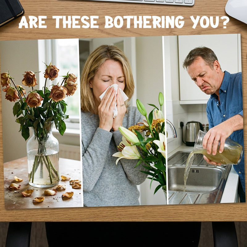 - För att rensa, damma av blommorna försiktigt. Undvik att tvätta för att bevara form och integritet.